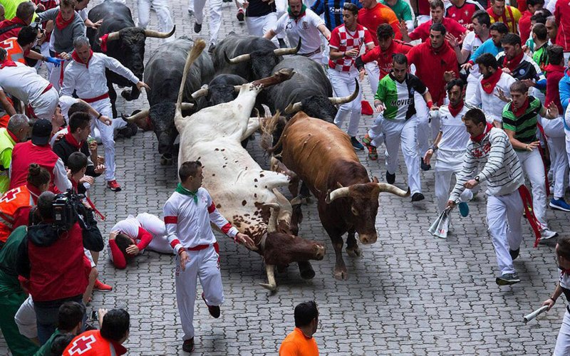 Update 9:04 am 7/17: This story has been updated to reflect the bulls run 15 miles per hour, not 24, and the encierro has been run for 500 years, but records of those killed only started to be recorded in the 1900s.